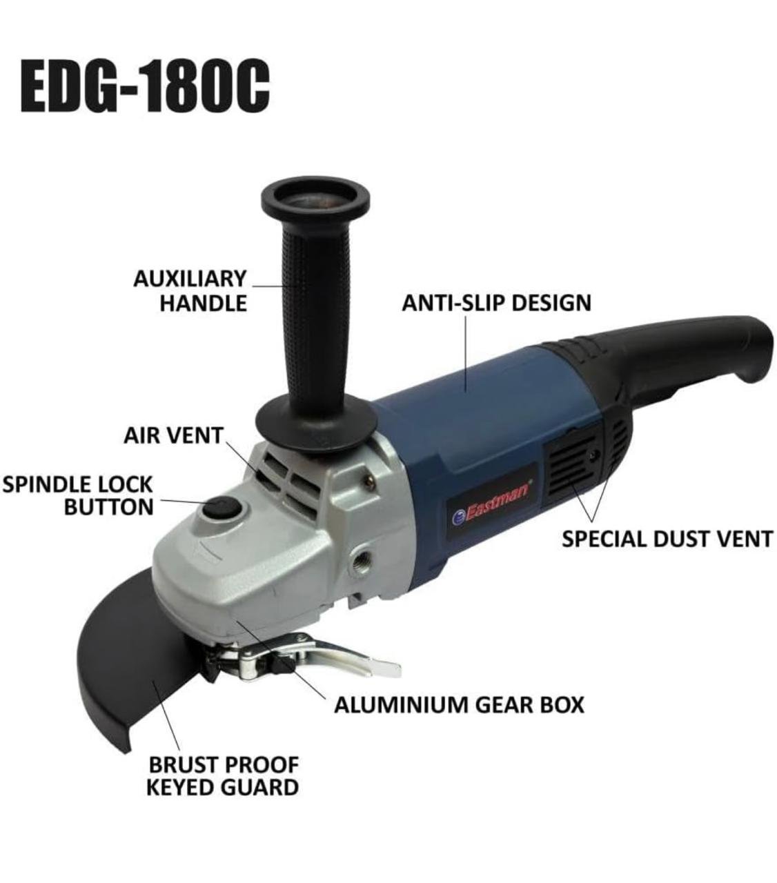 The EDG-180C angle grinder is built for heavy-duty applications. Its 2200W motor powers a 180mm disc, making it ideal for cutting and grinding tasks. The robust construction ensures durability, while the ergonomic handle provides better control during operation.