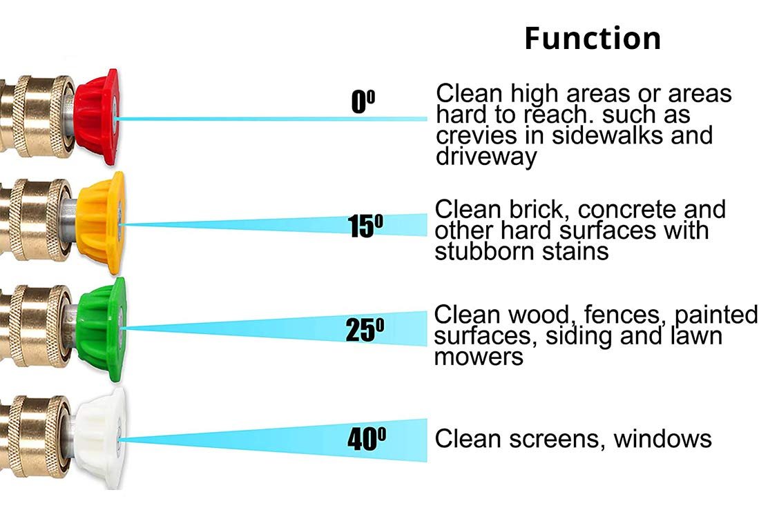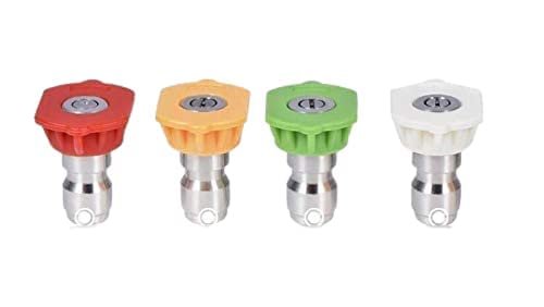 Front spray gun nozzle replacement designed to maintain correct spray pattern and pressure efficiency compatible with multiple pressure washer gun models.