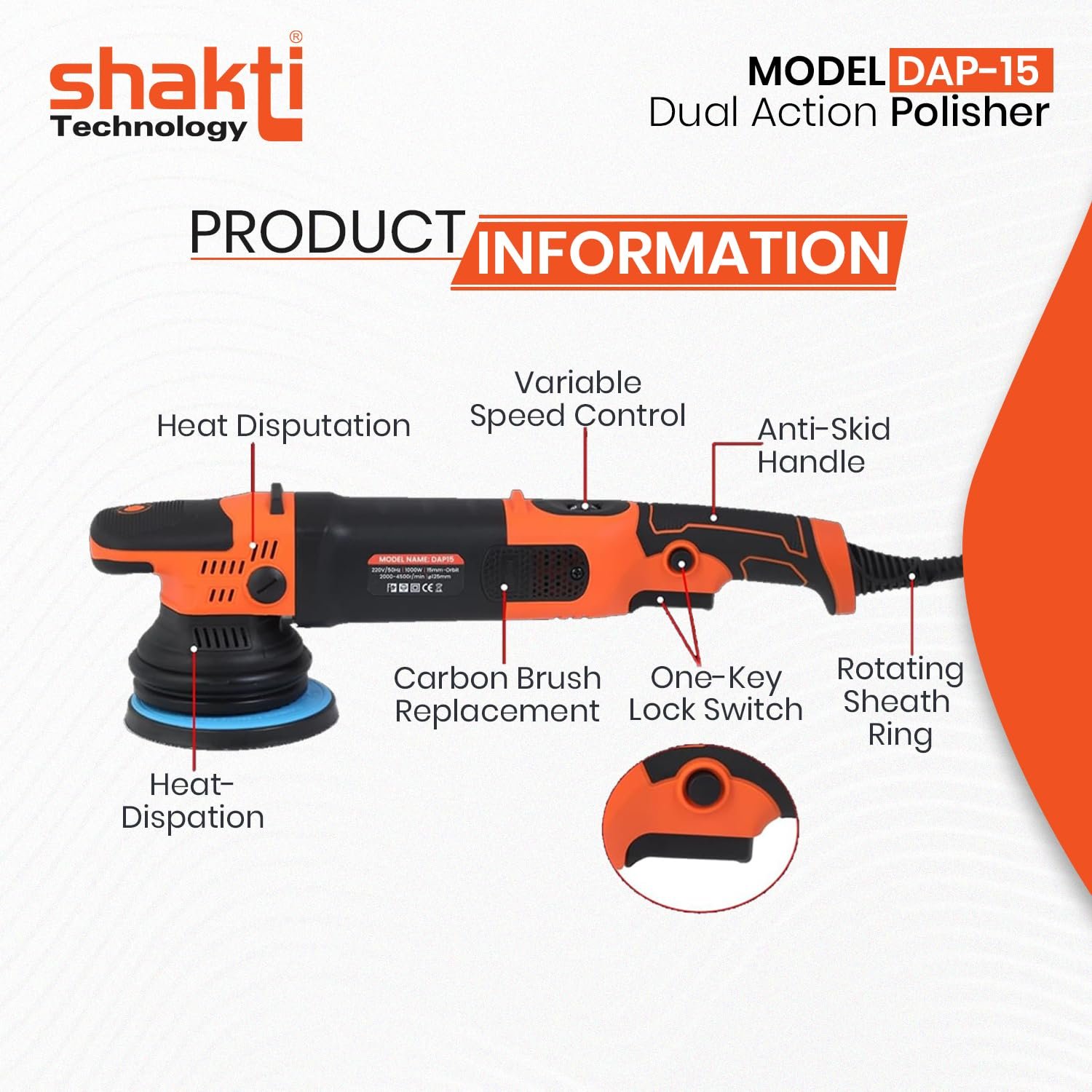 Shakti Technology DAP-15 Dual Action Car Polisher 2000-4500 RPM