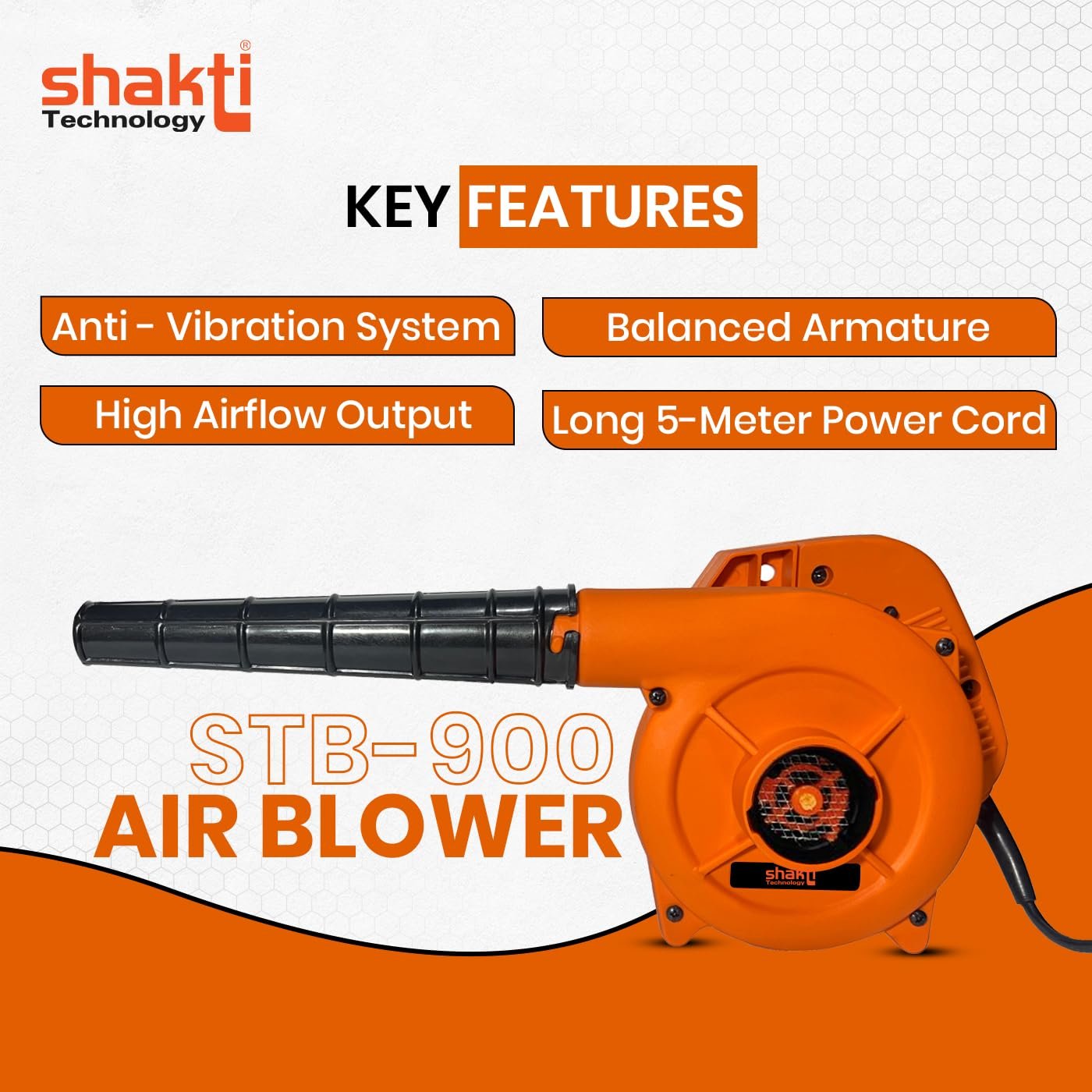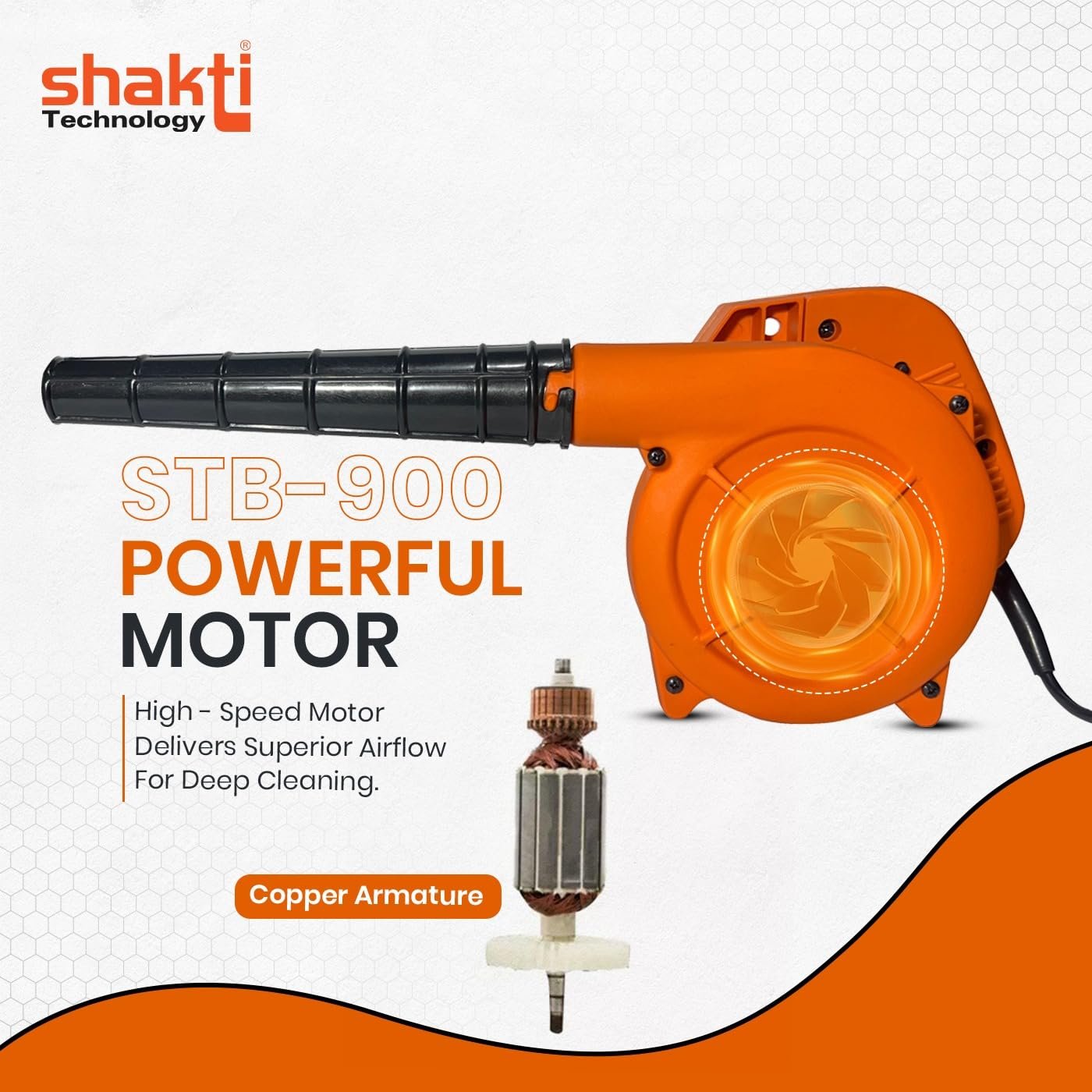 Shakti Technology STB-900 Electric Air Blower is a powerful 900W cleaning blower designed for dust removal, workshop cleaning and equipment maintenance. Features 14000 RPM high speed motor and 3.3 m3/min airflow for efficient cleaning. Operates on 220V supply and built with lightweight compact body for easy handling. Ideal for electronics cleaning, car drying and industrial dust removal.