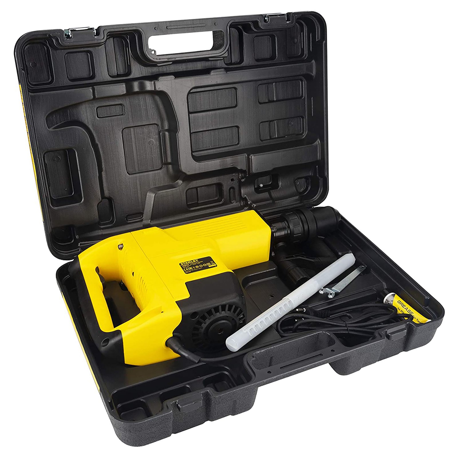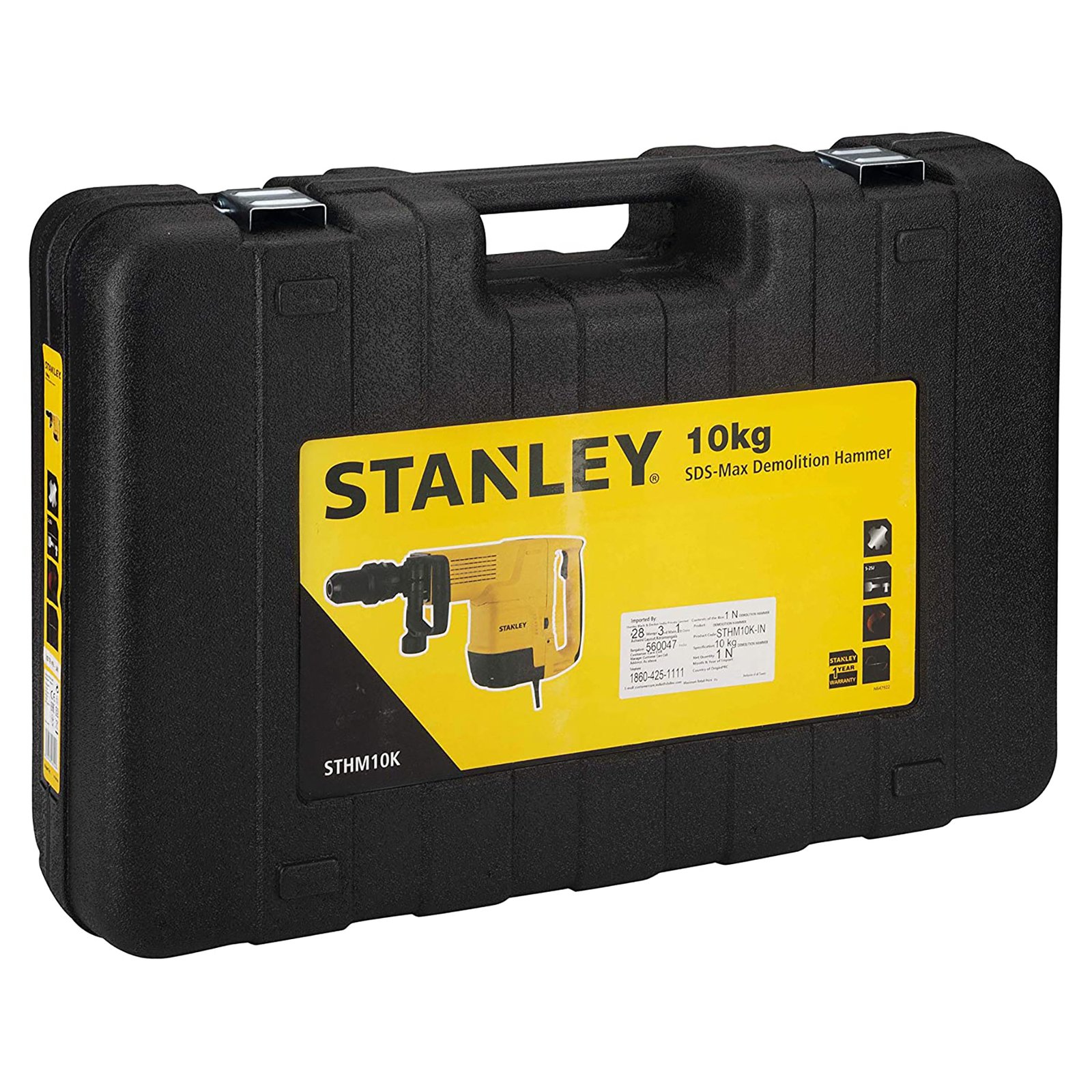 The Stanley STHM10K 10kg SDS-Max Demolition Hammer is a robust, professional-grade tool designed for heavy-duty demolition tasks. Equipped with a powerful 1600W motor, it delivers an impact energy ranging from 5 to 25 joules and operates at 900–1890 beats per minute (BPM), making it suitable for breaking concrete, chiseling, and other demanding applications. The SDS-Max chuck system ensures easy accessory changes and compatibility with a wide range of bits.